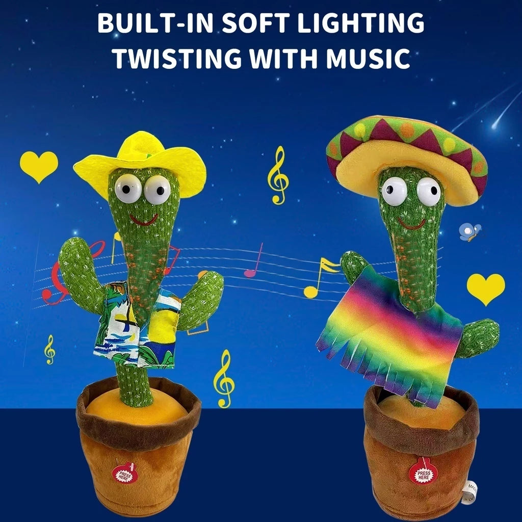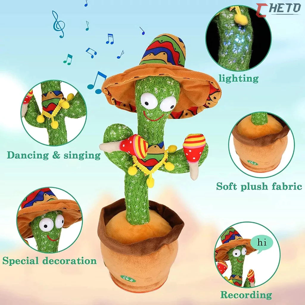 Novo brinquedo da criançada, o cacto dança e fala vem com uma função de gravação para repetir qualquer linguagem que você fala, de uma maneira engraçada, ele é ótimo para educação dos filhos e diversão da família, é um grande presente para esse dia das crianças.