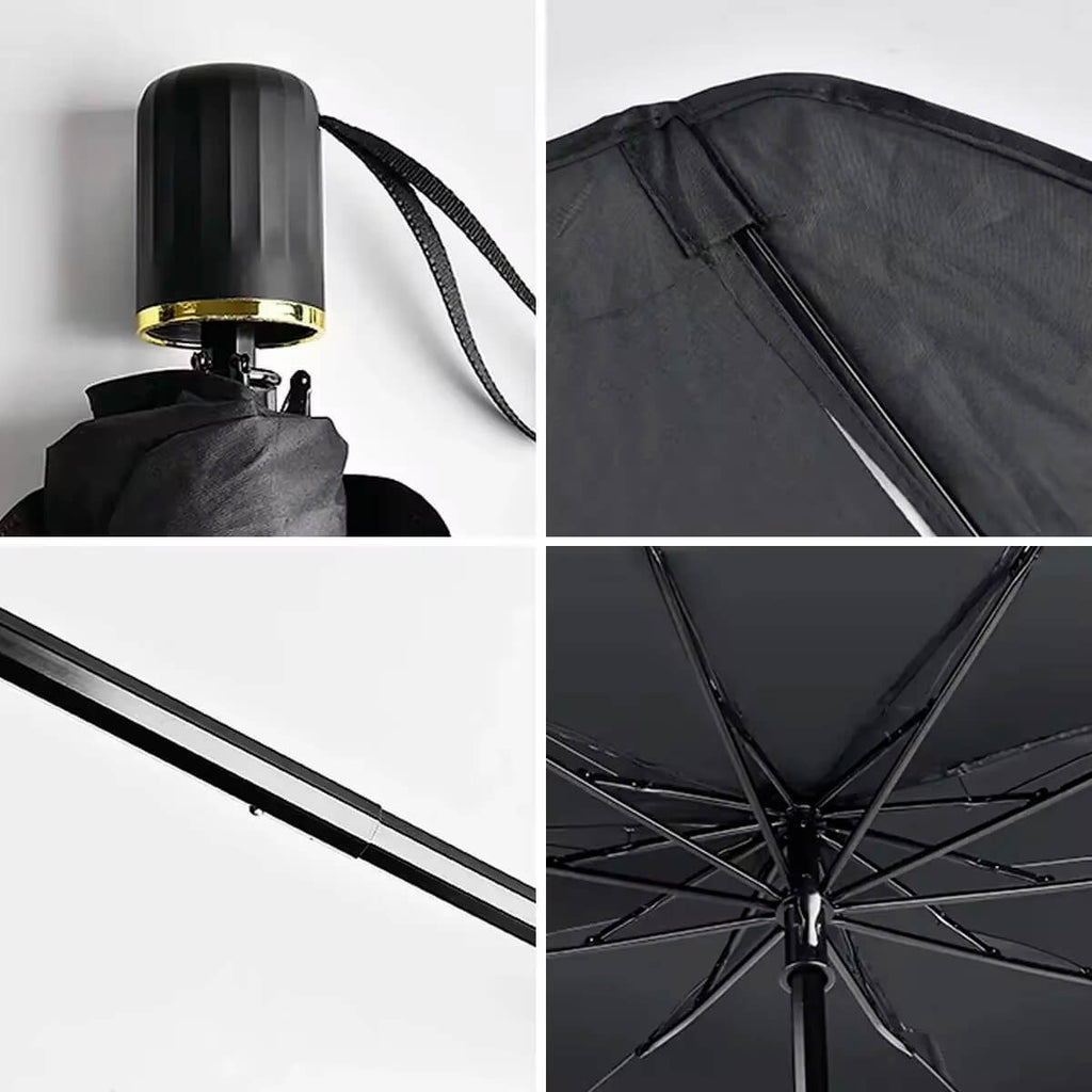 Protetor de Para-brisa modelo sombrinha retrátil, projetado para refletir raios solares com seu topo laminado, mantendo o interior do carro mais fresco. Oferece fácil manuseio e armazenamento, com cabo plástico ergonômico que proporciona praticidade e conforto. Ideal para proteger seu veículo de forma eficiente e conveniente.