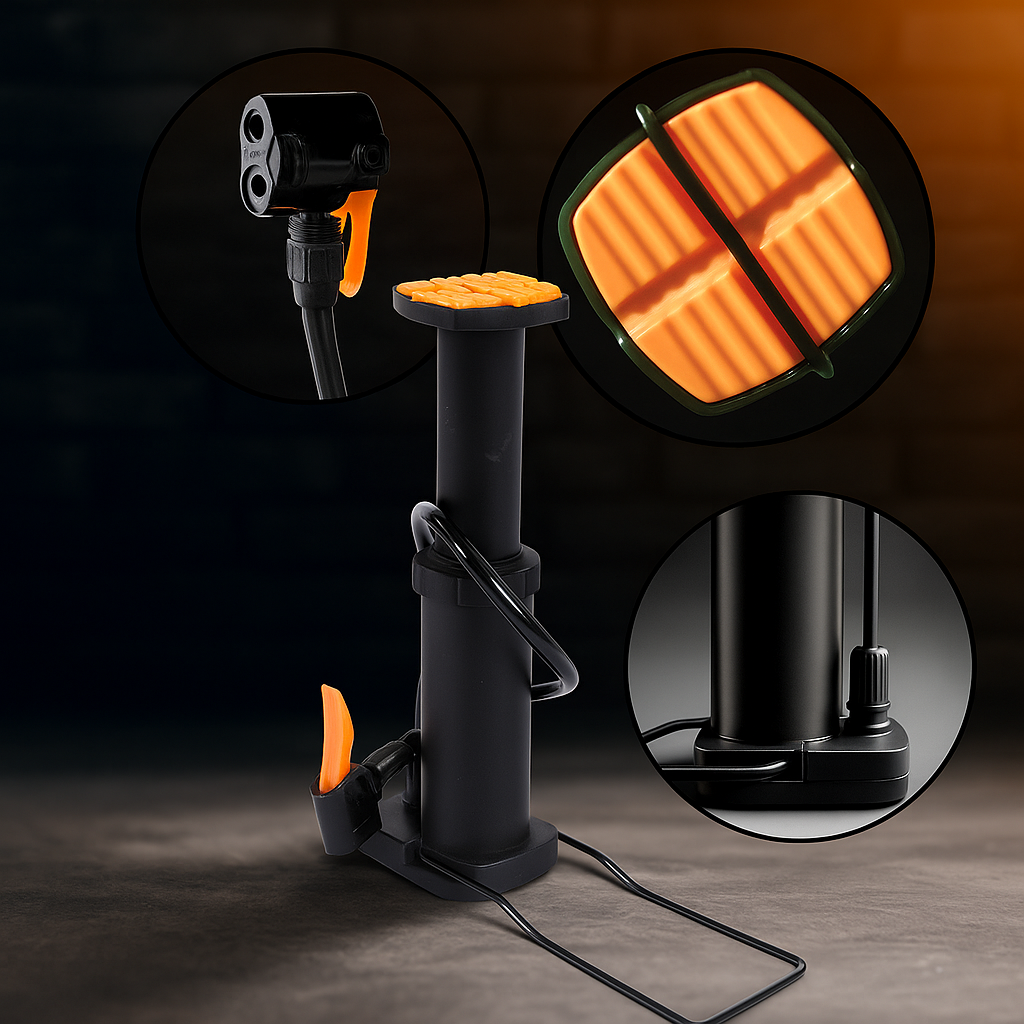 - Aplicações: Ideal para encher pneus de bicicleta, bolas esportivas (futebol, basquete, vôlei), colchões infláveis, boias e outros objetos infláveis de pequeno e médio porte.
